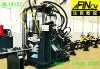 CNC angle line machine for marking, punching and cutting has following specification: 1) Angle size: ∠56×4∠140×12 (Q345) 2) Max. punching diameter: φ25.5mm12mm thickness,Q345 Norminal punching force: 540KN 3) Norminal Punching force: 540 4) Nominal Cutting force: 750 kN 5) Max. length of the raw angle12m 6) No. of punching head per side2 7) The punching row per side: arbitrariness 8) No. of character group4 9) Dimension of characters14×10mm10 characters 10) Cutting modeDouble-blade cutting 11) No. of CNC axes3 12) Infeeding Speed: 40m/min 13) Overall size: 25.4X7X2.2m Configuration for CNC angle line for punching marking and cutting model BL1412C INFEED SYSTEM (for bars up to 12 mt) Infeed transfer table for 12 m long bars Rotating loading system for 12 m long bars Automatic pincher clamping Infeed conveyor with idle rolls Carriage Pincher Device for bar length survey WORKING UNITS 1. Working units base · This base can hold the two punching units, the shear and the marking unit. 2. Marking unit with 4 marking groups · Hydraulic marking unit having the following main technical features: Marking capacity KN 540kN Type of standard character 0-9 and A-Z Size of letter/number mm 14×10×19 Characters per group "box" No. 10 Selectable marking groups No. 4